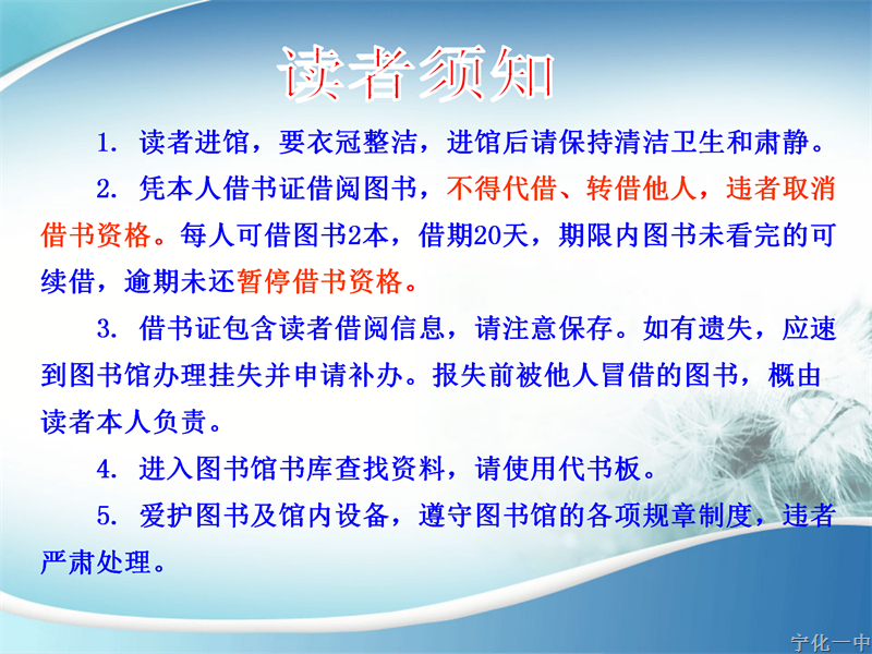 发布时间:2021-03-02作者:宁化一中图书馆审核:点击: 附件: