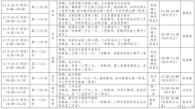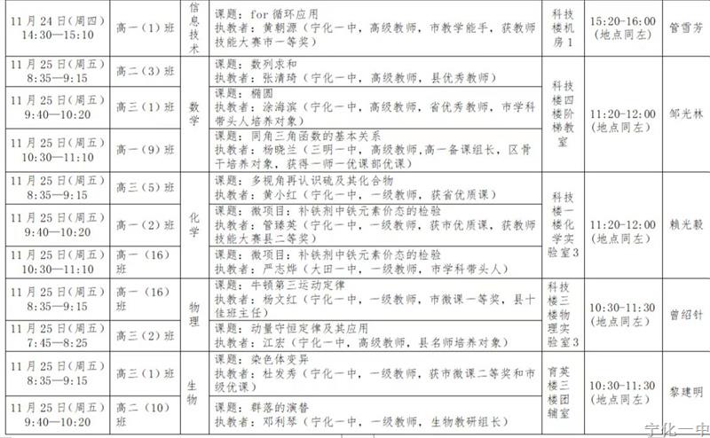 福建省宁化第一中学将于11月24-25日举办市级教学开放活动,