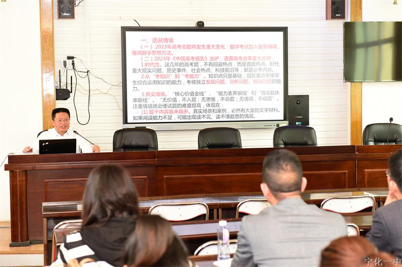 为了推进三明市普通高中新课程新教材实施国家级示范区(校)的建设,充分发挥全市“一盘棋”的备考策略,进一步探讨我市高三数学学科新高考备考工作,4月28日,三明市2022—2023学年第二学期高中新课程新高考背景下数学学科高考复习策略研训活动在宁化一中隆重举行。会议由三明教育学院唐震老师主持,三明市60多位高三数学教师参与研训活动。