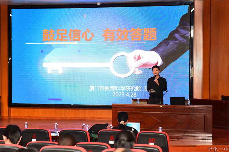 下午,厦门教科院的陈智猛专家带来了题为《2023年高考数学备考新趋势》的专题讲座。陈专家详细解读了国家层面对教育的政策和2023年普通高校的招生方案,给出了2023年高考数学备考的新趋势,并通过分析高中数学各个主干知识,提出了各块内容的备考策略。让老师们更加明确了最后40天的备考方向。