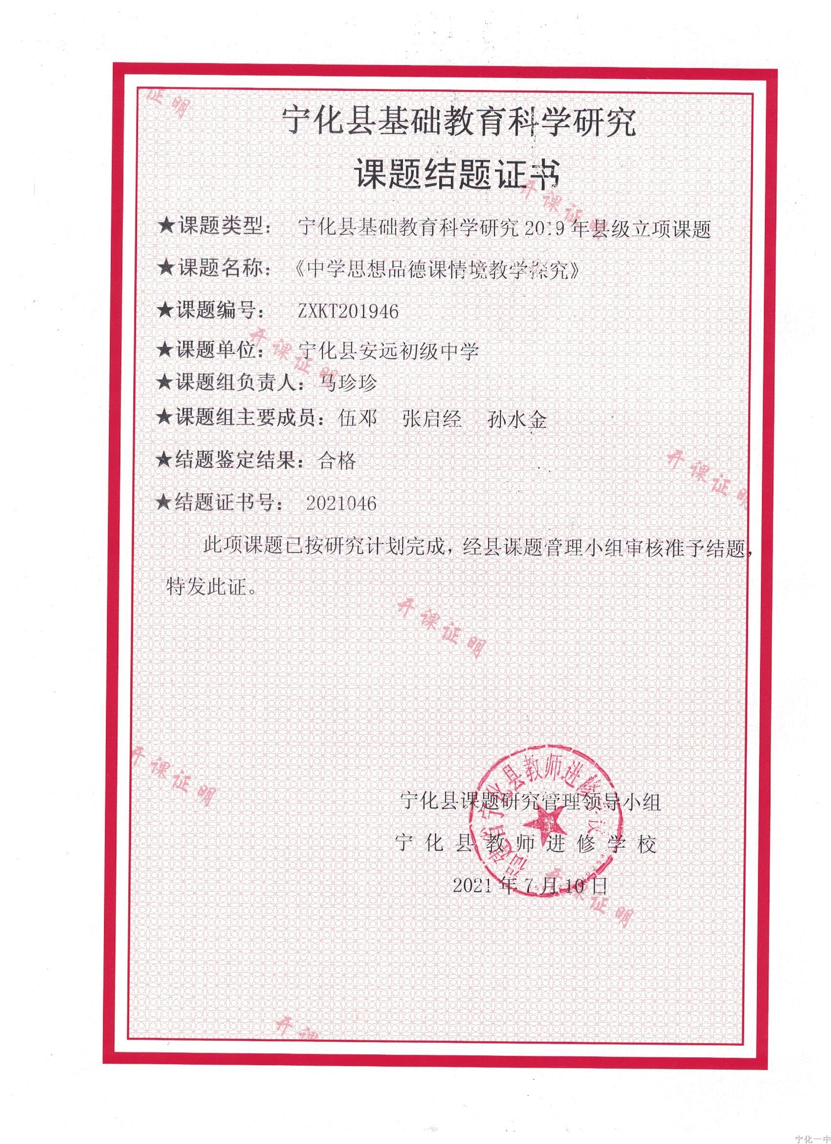 2021年结题的县级课题结题证书(14县)