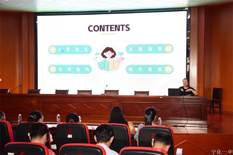 心理老师张益文为全体教师作了《穿越风暴拥抱你——青少年心理危机识别与干预》的专题心理讲座,她从了解危机、识别危机、支援危机和转介危机四个层面指导教师们面对学生心理问题进行适当的危机干预。