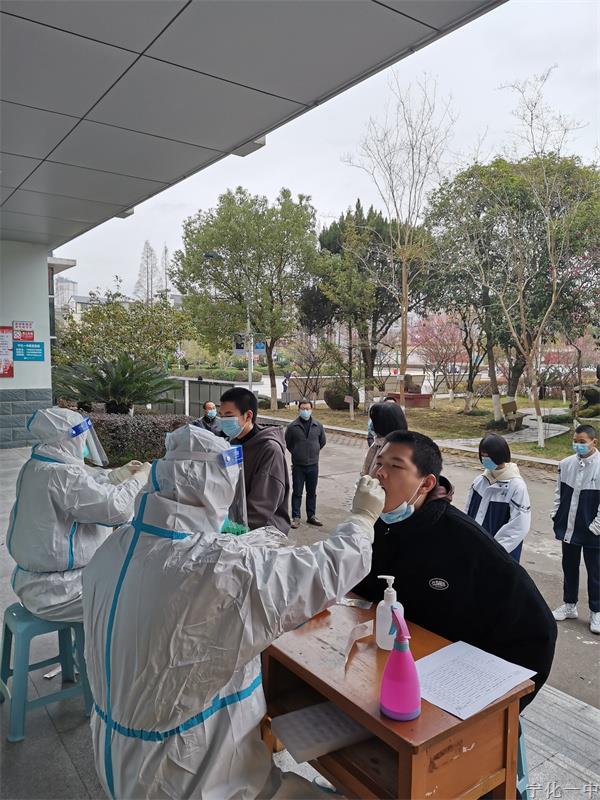 为确保核酸检测工作安全有序进行,我校政教处、医务室、保卫科等科室先后召开会议、精心部署、制定方案,对前期准备、入校流程、人员安排、分工协调等方面进行了详细的安排。在疫情防控工作中,我校谢春梅老师,彭永忠、邱林香校医等所有防控志愿者都让我们感受到了“志愿服务当为先,疫情防控做贡献”的可贵奉献精神。我们特别考虑到部分师生春节期间返乡过年、拜年的情况,招募了乡镇中学老师和当地医护人员为志愿者在各自乡镇为预先登记好的当地师生做好核酸检测志愿服务工作,这一举措方便师生的同时也避免了人流扎堆。
