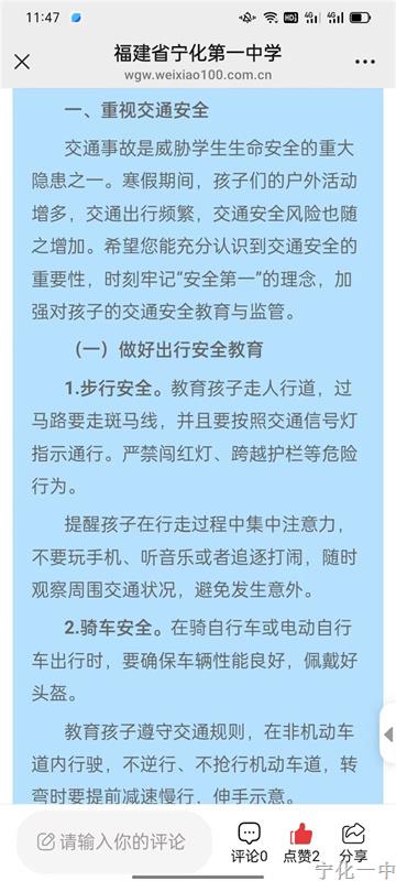 致家长的一封信。通过这一系列安全教育活动,宁化一中将安全的种子播撒在每一位师生的心中。相信在学校、家庭和社会的共同努力下,全体师生一定能够度过一个安全、愉快、充实的寒假!