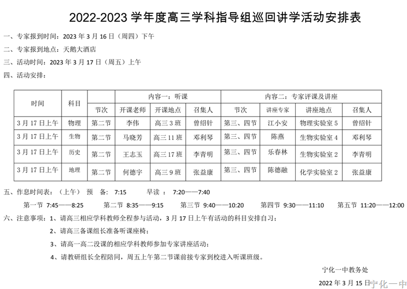 为了提高我校2023年高考复习备考质量,提升我校教师教科研和教育教学水平,3月17日,三明市高三学科指导组专家陈德融、江小安、陈燕、乐春林一行4人到我校巡回讲学。